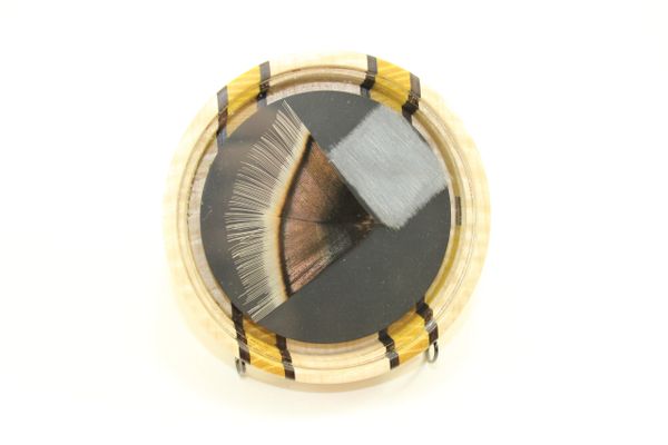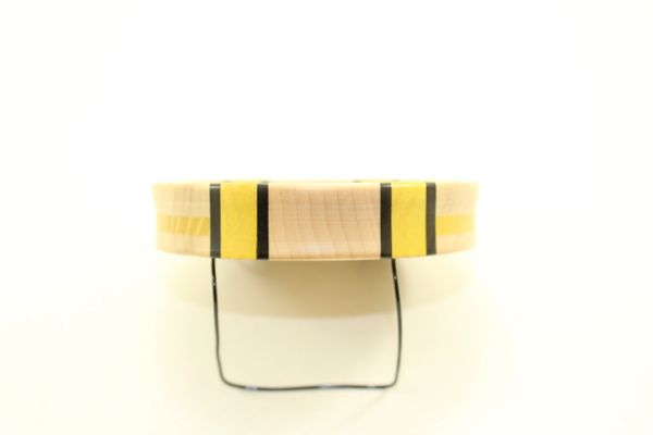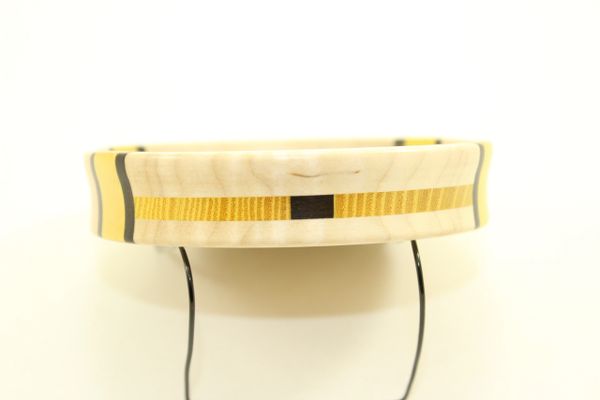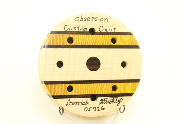 This Pot Call is Curly Maple with Quarter Sawn, End Grain, Osage Orange and Macassar Ebony Stripes. You will not find another call like the anywhere. Looks and sounds Great. You will not be disappointed! Comes with a stone conditioner and a 2 piece striker.